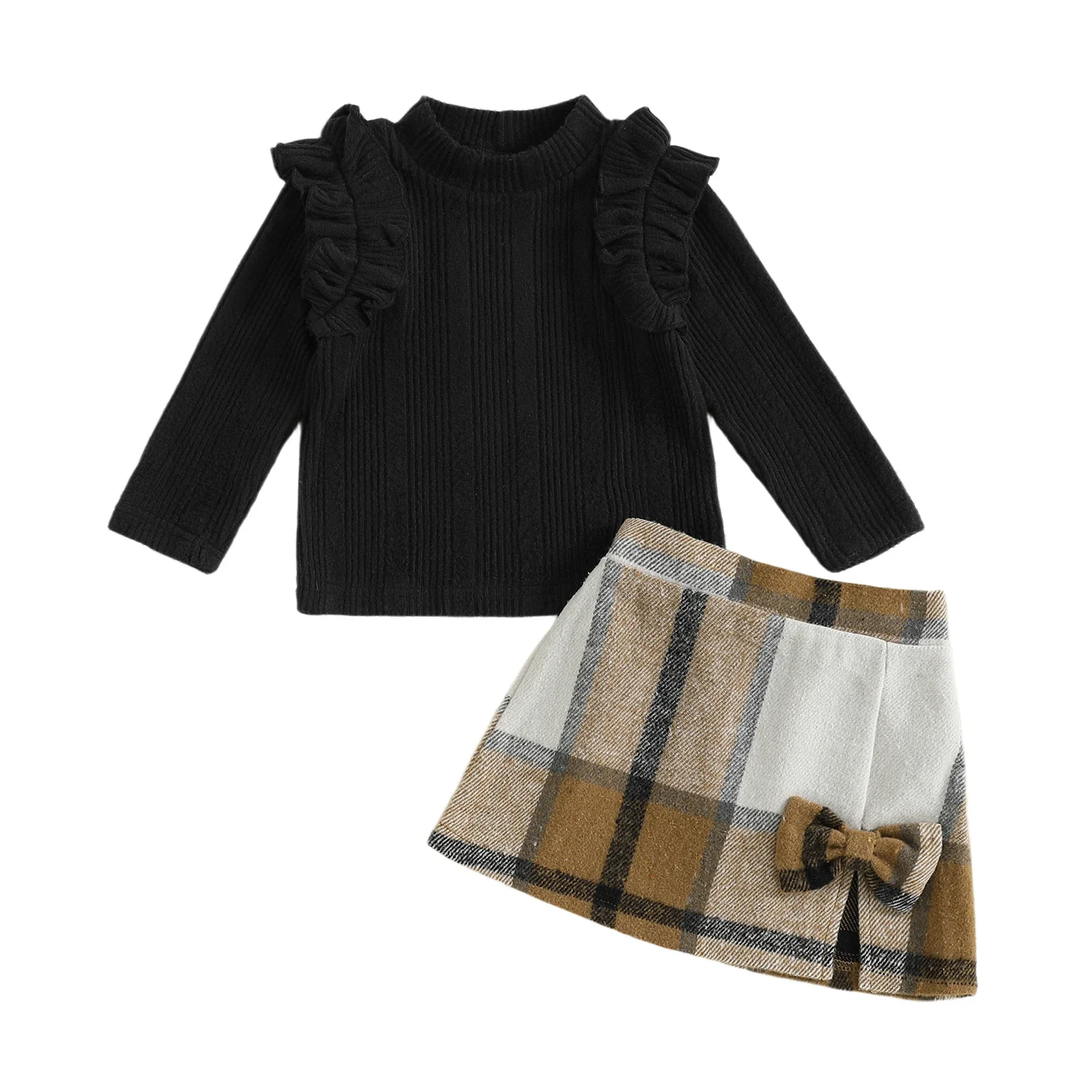 Dress your little one in cozy charm with the Annabelle Set. This adorable autumn outfit features a warm, snuggly top adorned with playful shoulder ruffles, perfectly paired with a matching tartan print skirt. Ideal for twirling and exploring, it brings comfort and style together for your toddler’s seasonal adventures.