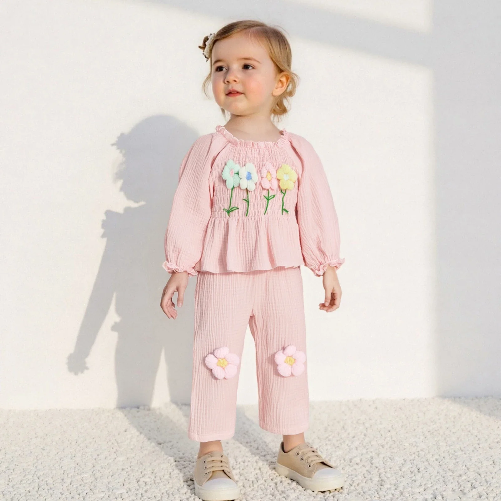 This charming In Bloom Boho Set features soft muslin fabric that feels gentle on your little one’s skin. Puffy boho-style sleeves add a whimsical touch, while delicate 3D crochet flowers bring a playful, handcrafted charm. Perfect for sunny days and special moments, this set combines comfort with adorable style.