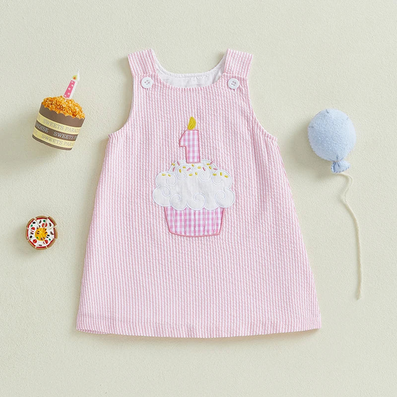This charming toddler A-line dress features a delightful gingham print and a cute cupcake design topped with a single candle—perfect for celebrating birthdays in style. Soft and comfortable, it’s ideal for your little one’s special day filled with fun and smiles.
